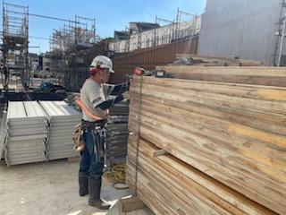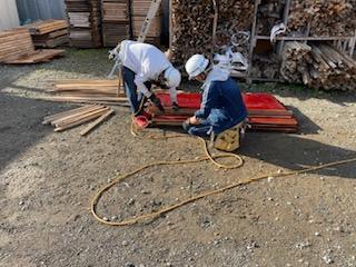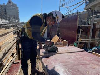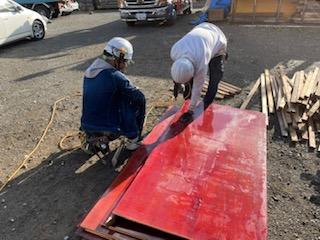 先日新人と置き場で型枠の加工を行いました!