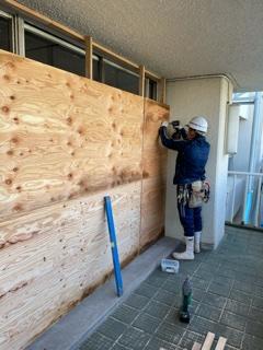 今回も新人講習の様子ですが今回の作業は建物の一部解体作業の為の建物養生をしました!