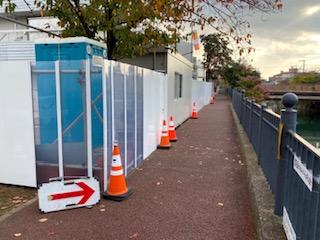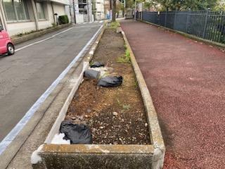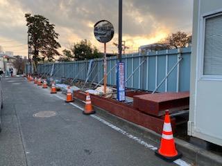 まずは準備工で仮囲いの設置と花壇の撤去をしました!